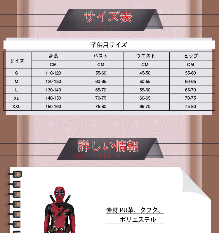 - > デッドプール&ウルヴァリン Deadpool3 Deadpool & Wolverine キッズ デッドプール 子供サイズ コスチューム オーダーメイド可能 スプレ衣装/靴