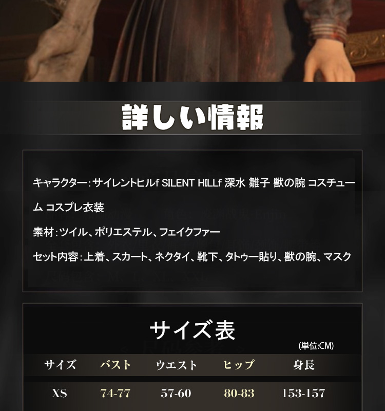 『サイレントヒルf』SILENT HILL f 深水雛子 しみずひなこ 主人公 コスチューム 腕カバー仮面付き コスプレ衣装